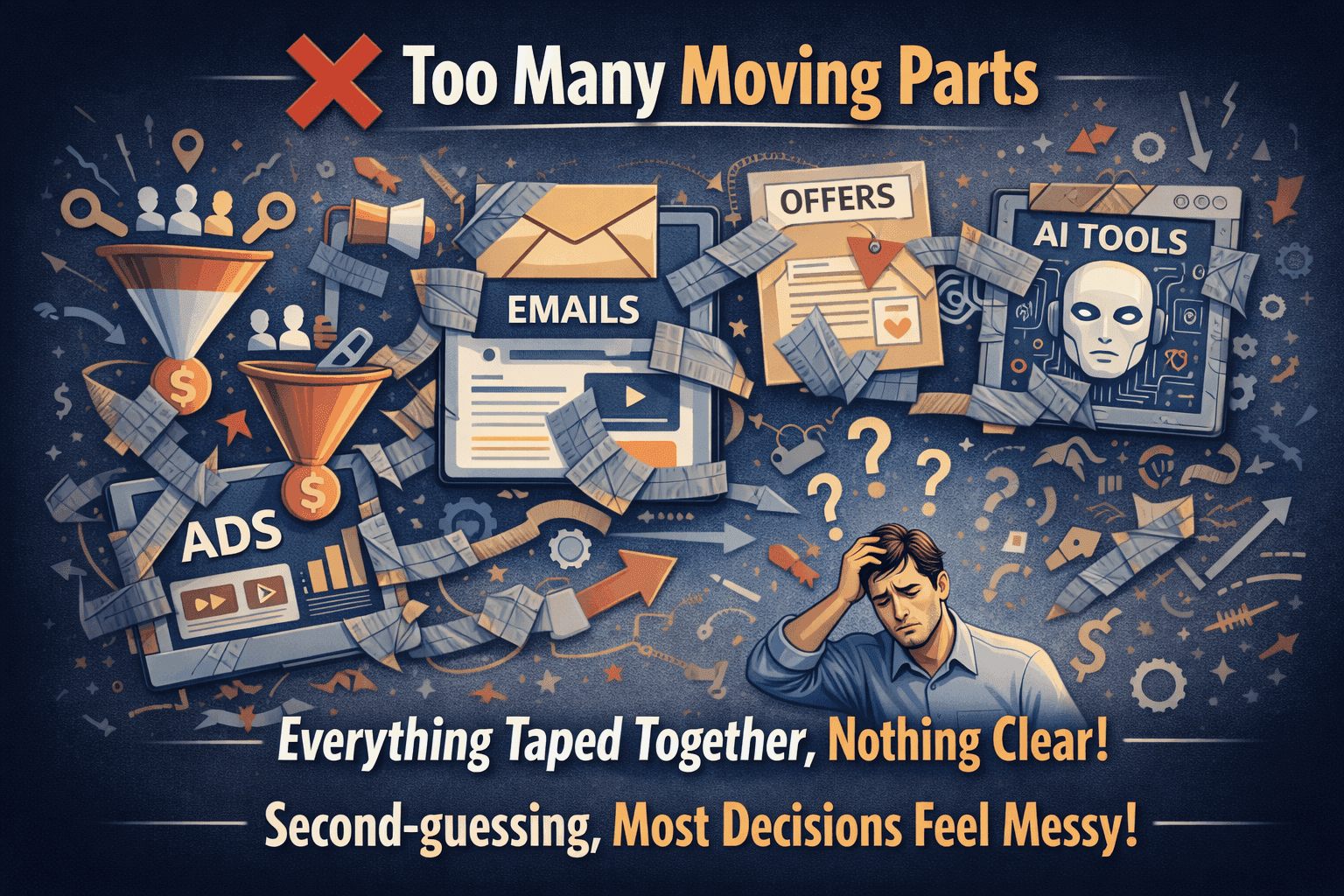 You’re duct-taping pieces together without a clear order, second-guessing every decision and never sure what actually matters.